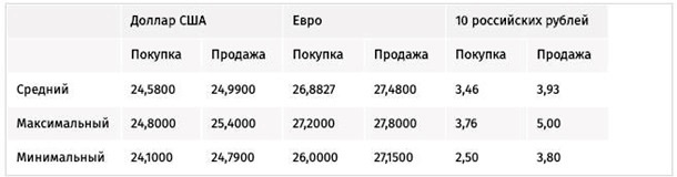 Курс продажи наличного доллара в обменных пунктах киевских банков по состоянию на 9:30 понизился по сравнению с 9 октября на 10,46 коп. до 24,99 UAH/USD, курс покупки - понизился на 7,08 коп. до 24,58 UAH/USD. Об этом сообщает BIN.ua в четверг, 10 октября.Средний курс покупки евро понизился на 6,23 коп. до 26,8827 UAH/EUR, курс продажи понизился на 8,18 коп. до 27,4800 UAH/EUR. Курсы наличной иностранной валюты: ![]() | |