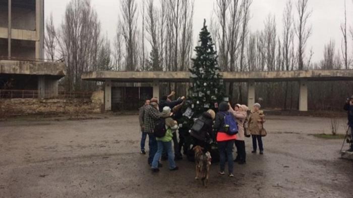![]() Фото: zik.ua Бывшие жители города, где находится Чернобыльская АЭС, украсили новогоднюю елку своими детскими фотографиями.