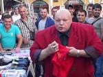 В Санкт-Петербурге устроили акцию по уничтожению импортных трусов.Саму процедуру провел уже известный борец с импортным пивом шоумэн и музыкант Стас Барецкий. Борьба с трусами произошла на местном рынке. Стоит отметь, что Барецкий почему-то разорвал красные трусы ногами. А в конце он продемонстрировал свой уже знаменитый трюк с разгрызанием пивной банки. | |