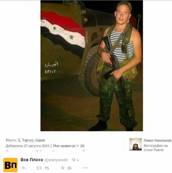 Пользователь Twitter "Все плохо" разместил в социальной сети фотографии военных РФ - предположительно в Сирии, пишет Лига.net.На фотографиях военные позируют на фоне блокпостов и зданий с надписями по-арабски, боевых машин и военных частей. На некоторых из них можно увидеть флаги РФ. Большинство снимков размещены с геотегами "Латакия", "Сирия". Другие материалы: Выбор посудомоечной машины О регистрации товарных знаков Прибор для экономии электроэнергии - товар-хит Онлайн-торговля стремительно растет во всем мире | |