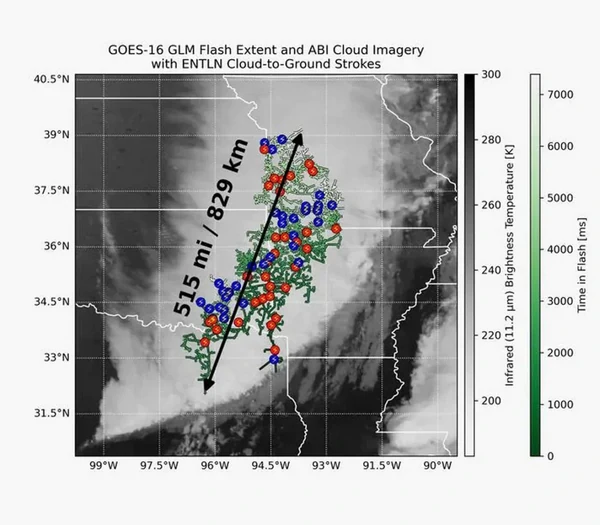 В сотни раз больше средней вспышки: метеоспутники зафиксировали молнию длиной 829 км | |