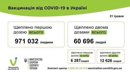 За минувшие сутки в Украине второй дозой вакцины от коронавируса привили вдвое больше людей, чем первой. Об этом свидетельствуют данные Минздрава в пятницу, 21 мая.Так, первую дозу получили 6287 человек, а вторую - 12 626 человек. В течение суток работали 289 мобильных бригад и 382 пункта прививки. В лист ожидания вакцинации записались 577 799 человек. | |