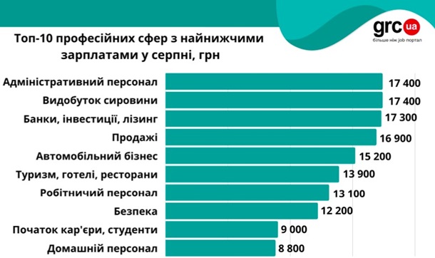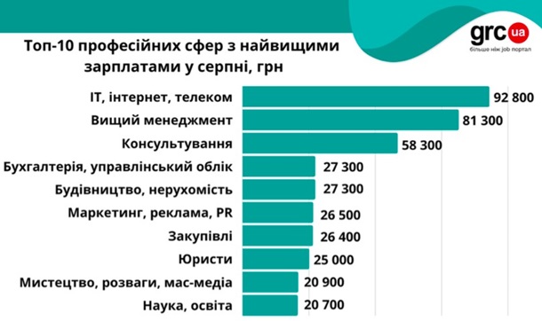 С июня уровень средняя заработная плата украинцев в большинстве сфер стабилизировалась, а осенью прогнозируется повышение окладов ключевым сотрудникам. Об этом свидетельствует анализ открытых вакансий порталу grc.ua за август. По данным портала, наибольшее снижение зарплат в украинцев произошло в апреле и мае. Тогда падение среднего уровня зарплат составило от 9 до 58% в зависимости от профессиональной сферы. С июня началась стабилизация окладов, которые предлагали в открытых вакансиях. По данным портала, в августе наблюдается незначительные колебания средних зарплат, однако их уровень преимущественно зафиксировался. Высокие зарплаты предлагают в IT-сфере, руководителям и в сфере консалтинга. К примеру, для IT- специалистов в августе средняя зарплата увеличилась на 22% и составила 92 800 грн в августе, по сравнению с июля. В августе руководителям в среднем предлагали наполовину больше, чем в предыдущем месяце - 81 300 грн. Увеличился и оклад для новых сотрудников в консалтинге в конце лета: с 32 300 грн в июле до 58 300 грн в августе. В десятку профессий с высокими зарплатами в августе попали также бухгалтеры и специалисты по финансам. В среднем их зарплата составляла 27 300 грн. К сравнению, в апреле оклад бухгалтеров составлял в среднем 17 500 грн и каждый месяц постепенно повышается. В августе чуть больше 20 000 грн в среднем предлагали специалистам медиа-сферы и педагогам на рынке труда. В августе снизилась средняя зарплата в открытых вакансиях для HR-менеджеров до 20 000 грн с 22 800 грн в июле. Снижение средних заработных плат наблюдалось и для административного персонала, в сфере продаж, в автомобильном бизнесе, в сфере туризма. Самые низкие заработные платы предлагают для студентов, специалистов без опыта работы и домашнего персонала. В августе в этих сферах средний оклад составлял от 8 800 грн до 9 000 грн. ![]()