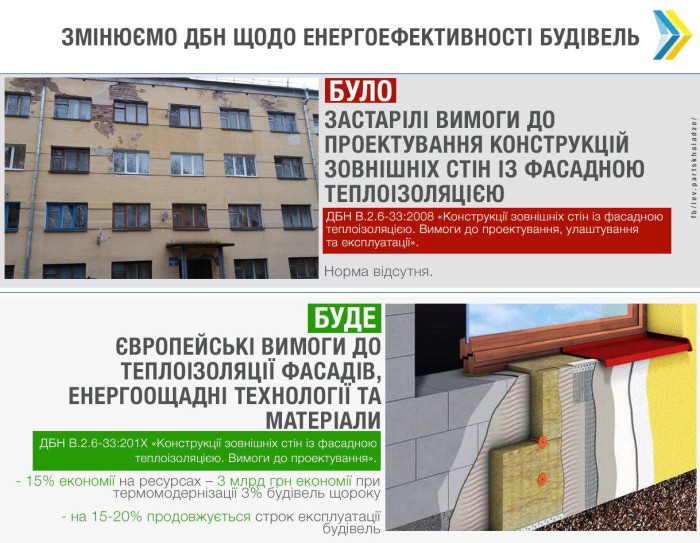 Министерство регионального развития, строительства и ЖКХ Украины вводит в государственных строительных нормах (ГСН) европейские требования к теплоизоляции фасадов зданий. Об этом сообщил замминистра регионального развития Лев Парцхаладзе, передает пресс-служба министерства.По его словам, благодаря этому украинцы смогут экономить до 15% тепловой энергии на ресурсах ежегодно. Соответствующие нормы содержатся в проекте новых ГСН. "Для большинства стран Европы и мира экономия на энергозатратах является правилом. В Украине это только начинают внедрять. Поэтому при обновлении ДБН по фасадной теплоизоляции мы предложили привести в соответствие с европейскими требования о проведении таких мероприятий, внедрить использование современных технологий и материалов, повысить надежность их использования. Благодаря этому украинцы смогут экономить до 15% тепла. В целом это около 3 млрд грн экономии при термомодернизации 3% всех зданий ежегодно. И чем больше будет реконструироваться и строиться таких домов, тем больше будет расти экономия", - отметил он. По словам Парцхаладзе, проведение таких мероприятий позволит также на 15-20% повысить срок эксплуатации зданий. "Если сегодня примерный срок эксплуатации здания составляет 100 лет, то проведение мероприятий по теплоизоляции фасадов продолжает ей жизнь еще до 20 лет", - рассказал замминистра. Нормы распространяются на проектирование конструкций наружных стен с фасадной теплоизоляцией жилых, общественных и промышленных зданий и сооружений при новом строительстве, реконструкции и капитальном ремонте (термомодернизации). Обновленный ГСН разработан Государственным научно-исследовательским институтом строительных конструкций и будет принят в ближайшее время, заверяют в министерстве. ![]() | |