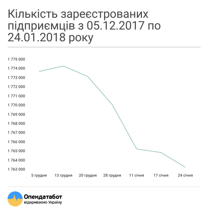 В течении последних двух месяцев закрылись 36 тыс. физических лиц-предпринимателей, а открылось только 27,5 тыс. Об этом сообщает платформа Opendatabot.Наибольшая доля закрытый наблюдается в Волынской (30%) и Запорожской (27%) областях. Наименьшая - в Одесской области (20%). Основатель платформы Opendatabot Алексей Іванкин отмечает, что в сравнении с прошлым годом такой скачок закрытых ФЛП не является драматическим. "Вероятнее всего такие изменения связаны с желанием людей закрыть "старые" дела перед Новым годом", - добавил он. Напомним, 27 декабря 2016 года президент подписал изменения в работе физических лиц-предпринимателей. С 1 января ФЛП должны платить единый социальный взнос - 704 грн в месяц, даже если не имеют прибыли. С этого времени в Украине было закрыто более 250 тыс. ФЛП. Согласно данным OpenDataBot, больше всего было закрыто в Киевской (44004), Харьковской (26222) и Днепропетровской (26558) областях. Подавляющее число закрытых частных предпринимателей относилось к отраслям оптовой и розничной торговли, складским и транспортным услугам. | |
