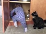Почти 600 тысяч просмотров набрал на сайте YouTube короткий ролик, получивший название "Кот устал от этого ребенка".Ролик начинается с того, что передвигающийся на четвереньках младенец забирается в небольшой шкаф, стоящий на кухне, и начинает играть находящимися на полке предметами. В это время кот, внимательно наблюдающий за передвижениями ребенка, прыгает на открытую дверцу шкафа, некоторое время балансирует на ней, а затем спрыгивает вниз, резко толкая дверцу задними лапами, отчего та захлопывается. На помощь запертому ребенку приходит мама, снимающая эту сцену на видео. Младенец, судя по его виду, даже не успевает испугаться. Читайте также: | |