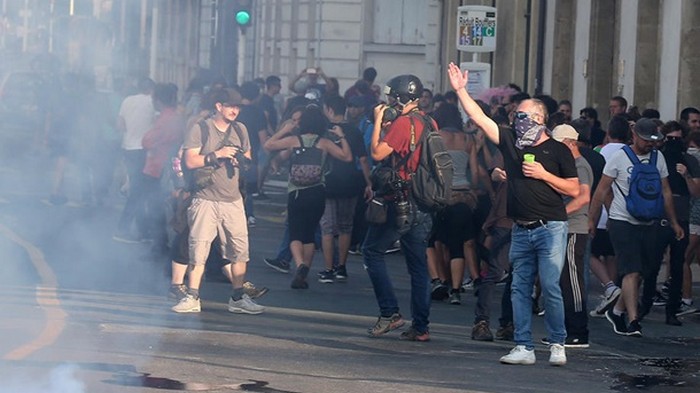 Во французском городе Байонна правоохранители четыре раза применяли водометы для разгона шествия противников саммита G7, который проходит в Биаррице. Об этом 24 августа сообщила газета Le Monde.По информации издания, в шествии, которое насчитывает около 15 тысяч человек, принимают участие антикапиталисты, экологи, антиглобалисты и несколько десятков "желтых жилетов". Отмечается, что столкновения противников саммита с полицией переросли в беспорядки и приблизительно в 19.00 (20.00 по киевскому времени) правоохранители применили против участников шествия водометы и слезоточивый газ. ![]() ![]() ![]()