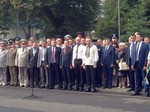 Премьер-министр Арсений Яценюк и глава МВД Арсен Аваков во Львове принимают участие в церемонии принесения присяги сотрудниками новой патрульной полиции.