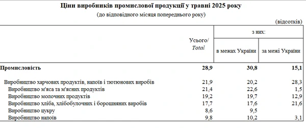 Продовольственная инфляция существенно выросла в Украине в середине прошлого года. Она и сейчас остается высокой. Об этом сообщает РБК-Украина со ссылкой на данные Госстата. По данным статистического ведомства, в мае 2025 года оптовые цены производителей промышленной продукции по сравнению с маем прошлого года выросли на 28,9%. Цены в пределах Украины выросли на 30,8%, за пределы Украины - на 15,1%. В производстве пищевых продуктов, напитков и табачных изделий цены выросли на 21,9%, в частности в пределах Украины - на 20,2%, за пределы Украины - на 28,3%. Больше всего выросли цены у мяса и мясных продуктов - на 21,4%, в т.ч. внутри Украины - на 22,5%. В производстве молочных продуктов цены выросли на 19,2%, в частности, внутри Украины - на 19,7%. В производстве хлеба, хлебобулочных и мучных изделий цены поднялись на 17,7%, в том числе внутри Украины - на 17,6%.