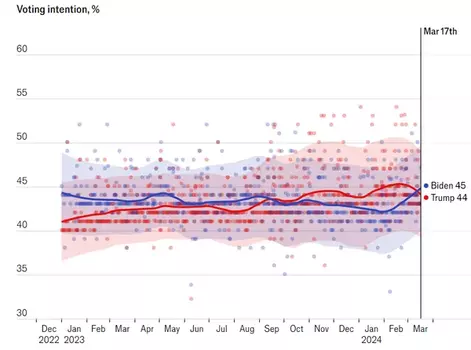 Президент США Джо Байден по результатам социологических опросов впервые с августа прошлого года опередил своего конкурента на предстоящих выборах, бывшего главу государства Дональда Трампа. Об этом сообщает РБК-Украина со ссылкой на данные издания The Economist. Согласно обновленным данным от 21 марта по соцопросам, Байден (представитель Демократической партии) набирает на один процент больше Трампа. В среднем показатели у действующего американского президента указываются на уровне 45% против 44% у его предшественника в должности, лидера "республиканцев". Самые низкие и высокие уровни по опросам у Байдена и Трампа указываются в пределах 40-50% и Трампа 39-49% соответственно. Отметим, что по данным The Economist по опросам, шансы Трампа на победу оценивались ниже, чем у Байдена, весь период с декабря 2022 по август 2023-го. А уже с прошлой осенью и этой весной экс-президент Штатов имел больший процент, вплоть до сегодняшнего дня, когда действующий глава государства смог вырваться вперед. Президентские выборы в СШАНапомним, выборы президента США намечены на 5 ноября 2024 года. Согласно прогнозам, главным кандидатом от демократов станет действующий американский лидер Джо Байден. От республиканцев, кроме Дональда Трампа, в гонке принимала участие экс-посол США в ООН Никки Гейли, но она в начале марта сняла свою кандидатуру с гонки. В конце февраля Трамп и Байден выиграли свои праймериз в штате Мичиган. Однако Байден столкнулся с проблемами: около 100 тыс. избирателей избрали в бюллетене вариант "не определился". Таким образом, избиратели поддержали Демократическую партию, но не перечисленных в бюллетене кандидатов, и являются протестом против действий Байдена по войне между Израилем и ХАМАС. | |