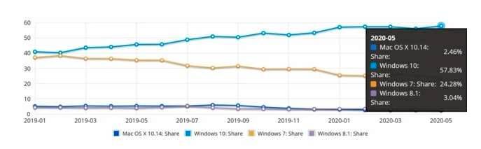 Прошло почти пять месяцев с тех пор, как Windows 7 завершила свой этап расширенного периода поддержки. Январь 2020 года отправил некогда популярную операционную систему в историю. Однако, несмотря на закрытие, почтенная "семерка" по-прежнему остается второй по популярности операционной системой после Windows 10, занимая около 25% мирового рынка, опережая macOS в несколько раз.Windows 7 была выпущена еще в 2009 году. Она вышла из основной поддержки и вступила в фазу расширенной поддержки в январе 2015 года, что позволяло пользователям по-прежнему получать бесплатные критические исправления безопасности, исправления ошибок и техническую поддержку в течение следующих пяти лет. Но время пролетело незаметно быстро. 14 января этого года расширенный период поддержки закончился. ESU по-прежнему доступны для всех пользователей Windows 7 Professional и Windows 7 Enterprise, но Microsoft взимает 25 долларов за поддержку версии Enterprise или 50 долларов за Pro, и эти цены будут расти с каждым годом. ![]() Год назад на долю Windows 7 приходилось 35% рынка. Но почему многие избегают обновления до Windows 10? Во многом это связано с проблемами конфиденциальности современной системы, хотя в последнее время Microsoft много сделала для решения этой проблемы. Есть также многочисленные проблемы, вызванные обновлениями Windows 10, тот факт, что некоторые компании просто не имеют возможности обновить компьютеры, поэтому просто предпочитают Windows 7. Windows 10 в свою очередь продолжает укреплять свои позиции в качестве мирового лидера, увеличив свою долю до 57,83%. В марте Microsoft наконец достигла своей цели: 1 миллиард устройств работает под управлением своей последней операционной системы. | |
