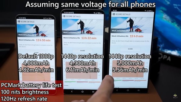 ![]() Фото: кадр из видео Для точности блогер установил на всех трех смартфонах одинаковые настройки, зарядил каждый до 100 процентов, и установил яркость экрана на 1000 нит