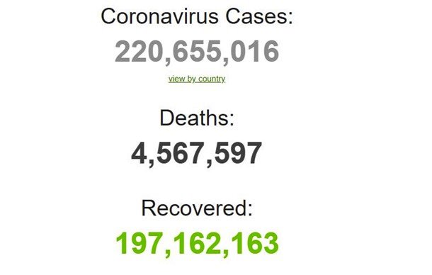 За месяц в мире выявили более 20 миллионов случаев коронавируса, свидетельствует статистика сайта worldometers. Так, 4 августа число заболевших составляло 200 млн 355 тысяч, а 4 сентября уже 220 млн 655 тысяч. Заболеваемость в августе была самой высокой с апреля.Выздоровели за месяц более 16 млн 560 тысяч человек, а с начала пандемии 197 млн 162 тысячи. Летальных случаев за месяц зафиксировали почти 307 тысяч. Всего умерло от коронавируса более 4 млн 567 тысяч человек. За сутки 2 сентября в мире зафиксировали 663 107 случаев COVID-19. Больше всего - в США - 182 593 случая, в Индии - 42 346, в Великобритании - 42 076. 9827 заболевших в мире за сутки умерли. ![]()