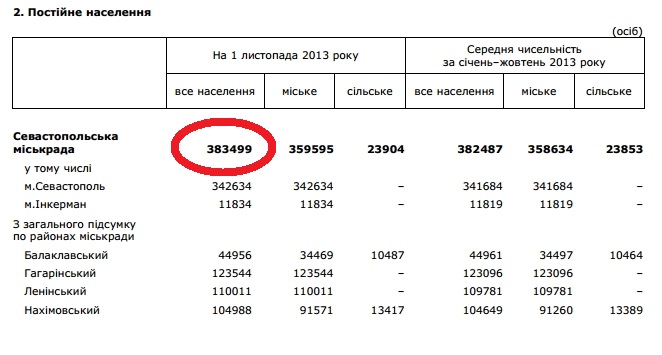 Это следует из сопоставления данных явки и статистических данных за 2013 год, на которые обратил внимание блогер teh-nomad в Живом Журнале, передается со ссылкой на «Украинскую правду».Так, глава комиссии Верховного совета Крыма по организации и проведению референдума Михаил Малышев заявил, что по состоянию на 8 вечера 16 марта явка избирателей в Крыму составила 81,36%. «На 20 часов в Крыму проголосовали 1 миллион 250 тысяч 426 человек. Это результат без учета Севастополя. С учетом Севастополя проголосовали 1 миллион 724 тысяч 563 человека», — заявил Малышев. То есть, если верить крымских «властей», 474 137 человек из Севастополя проголосовали на «референдуме». Однако по состоянию на 1 ноября 2013 года, согласно данным Управления статистики в Севастополе, все постоянное население города — 383 499 человек, а присутствующее на тот момент — 385 462 человек. «На конец прошлого года население Севастополя составило 385 462 человека. Это с учетом детей, которые не имели права голосовать. 474 137 — 385 462 = 88675 человек случайно появились в Севастополе во время референдума. 474 137 /385 462*100=123% севастопольцев проголосовали за вход в состав России… То есть, пришли все — и младенцы, и школьники, и подозреваю, что мертвые», — отмечает teh-nomad. Вполне вероятно, такую же «погрешность» можно распространить а весь Крым. | |