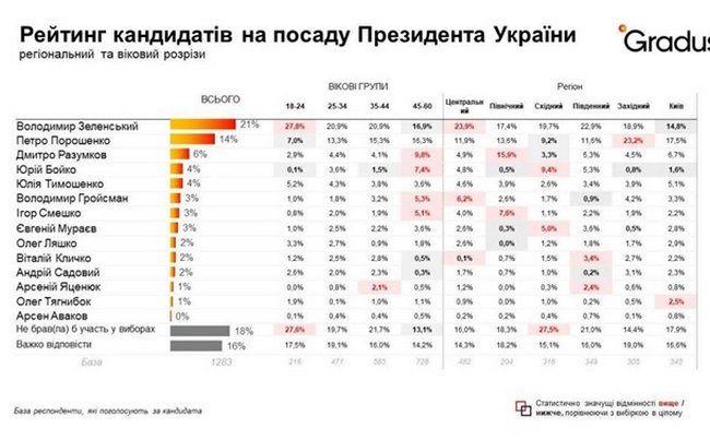 Действующий президент Владимир Зеленский продолжает возглавлять рейтинг политических симпатий украинцев. Он получил бы около 30% голосов избирателей, если бы президентские выборы проходили в ближайшее время. Об этом свидетельствуют результаты социологического опроса, проведенного компанией Gradus Research в декабре этого года.Отмечается, что свой голос за Зеленского готовы отдать 30% респондентов, которые планируют принять участие в голосовании и точно определились с выбором. Среди всех респондентов уровень поддержки действующего президента находится на уровне 21%. Второе место по уровню поддержки среди украинцев занял пятый президент, народный депутат Петр Порошенко, которого готовы поддержать 22% определившихся с выбором респондентов. При этом среди всех опрошенных этот показатель находится на уровне 14%. На третьем месте рейтинга находится нардеп, экс-спикер Верховной Рады Дмитрий Разумков (9% голосов определившихся и 6% среди всех респондентов), четвертое - делят между собой нардепы Юрий Бойко и Юлия Тимошенко (у обоих 6% и 4% соответственно), пятое – экс-премьер Владимир Гройсман и политик Игорь Смешко (у каждого по 5% и 3% голосов соответственно). Социологический опрос был проведен исследовательской компанией Gradus Research 7-8 декабря 2021 года методом самозаполнения анкеты в мобильном приложении Gradus. В опросе участвовали 2000 респондентов. | |