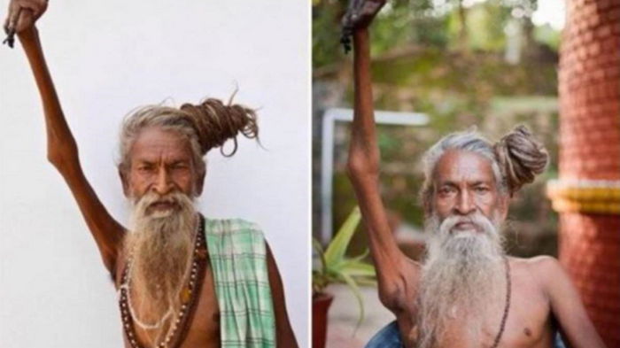 Житель Индии прожил полстолетия с поднятой вверх рукой | |